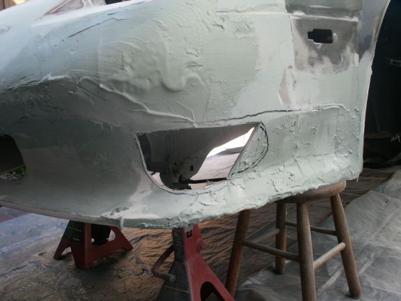The secret when using BONDO type materials is to let it cure to a “B” stage and then use a Shurform (cheese grater looking tool) to shape it and it then cuts like cheese. If you wait until it fulls cures (I see it on cars that are driving around too many times and cringe at the sight…), then break out the HD grinders and watch the dust fly!