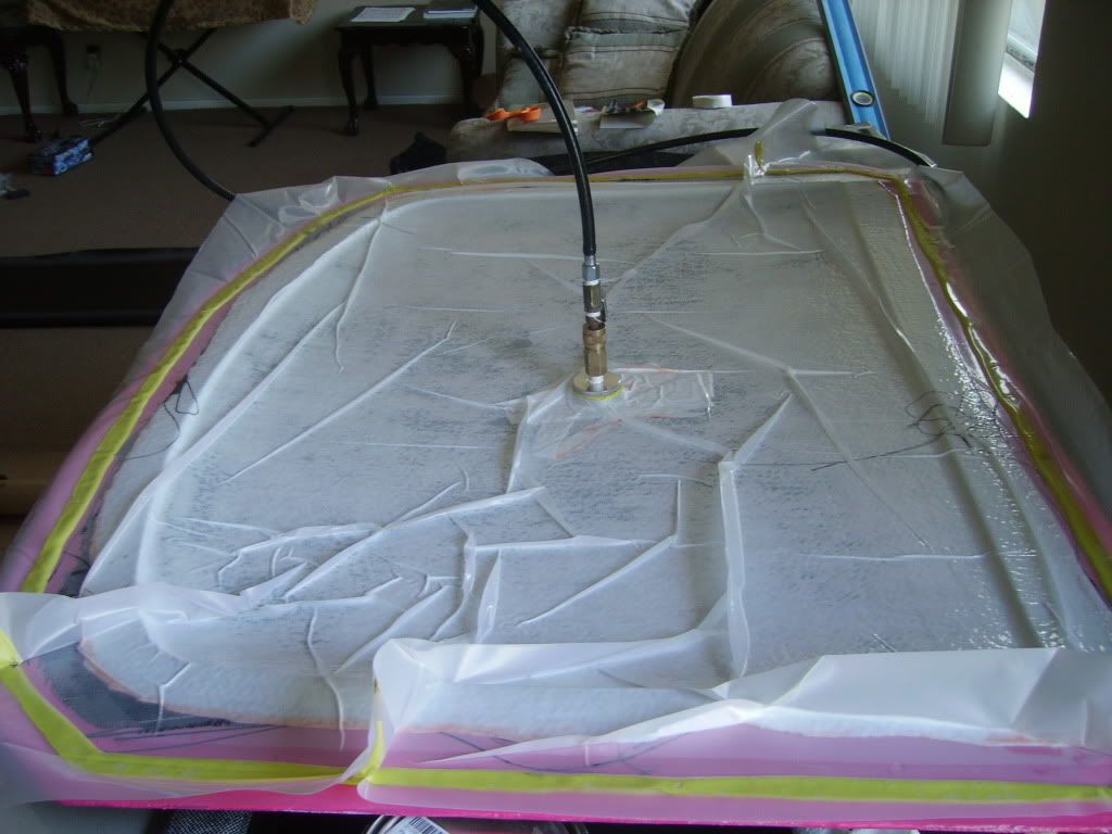 To be honest every infusion I have done has some air spaces on the top of the weave like Mike’s sample piece. The dry air spaces are not entirely over the whole surface of the part… just here and there.