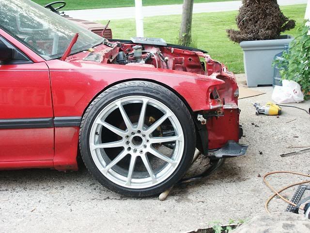 Hello I am new to this forum My name is Scott. By trade I am a machinest/tool&die maker. I have been into customizing cars for as long as I can remember.I have done my share of body work and painting. I am new to all this Composite stuff though. And would like to thank everyone for what they contribute hear it is alot of help. I have done alot of reading hear and used to read alot on fiberglast.com web site. My newest project is trying to make a wide body for my Honda Civic hatchback. I am kinda trying to make it look like a DTM car. I want to widen the fenders 4", and also widen the bumpers out to match. I have seen many techniques used to make plugs but would love all your input as well. I now this is a huge project and I will probably experiment with smaller stuff as well but I have started this and would like to continuee. I will post some pictures of my progress so far. Not much though except for taring the car apart and cutting 4" out of the fenders to get the car to fit 18" wheels and sit very low to the ground. And I also started the front bumper.