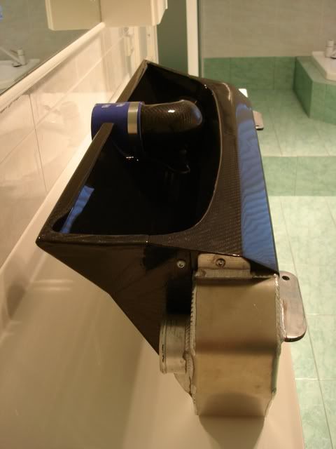 This is just a shrouded duct for an aluminium intercooler. There is a carbon fibre tube attached that appears to be joined at either end with silicone hose.